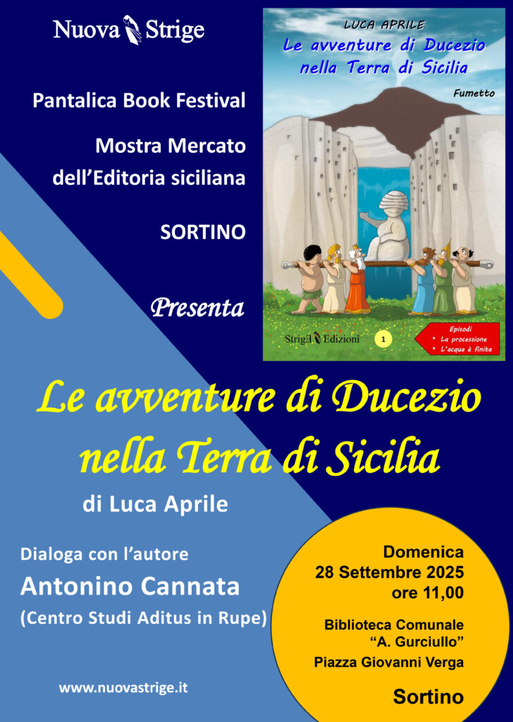 Domenica 28 settembre alle ore 11,00 verrà presentata l’ultima nostra pubblicazione: “Le avventure di Ducezio nella Terra di Sicilia” di Luca Aprile. E’ un fumetto, rivolto soprattutto ai giovanissimi, che ci auguriamo possa essere una piacevole lettura anche per gli adulti. E’ il primo numero di una serie di fumetti che si propongono di raccontare, tra avventura, magia e un pizzico di ilarità, periodi di storia antica della Sicilia e di Siracusa in particolare.