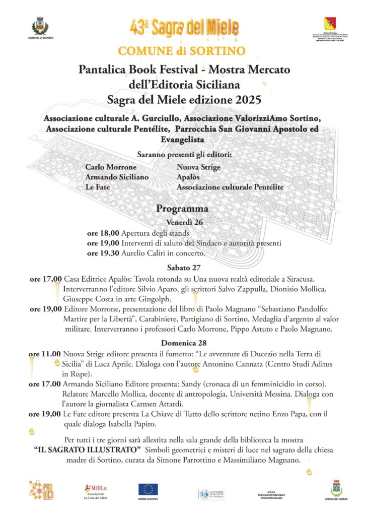 Oggi, 26 settembre, inizia il Pantalica Bool Festival a Sortino nell’ambito della 43^ Sagra del Miele.